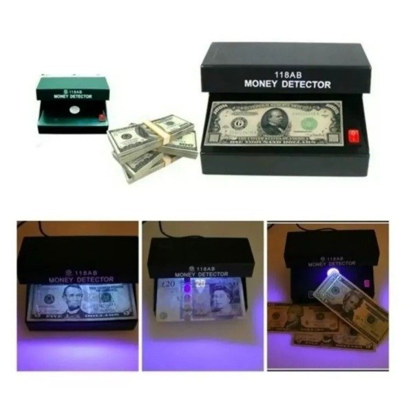 Detecta la presencia de componentes UV en billetes, cheques, tarjetas de crédito, cupones, etc